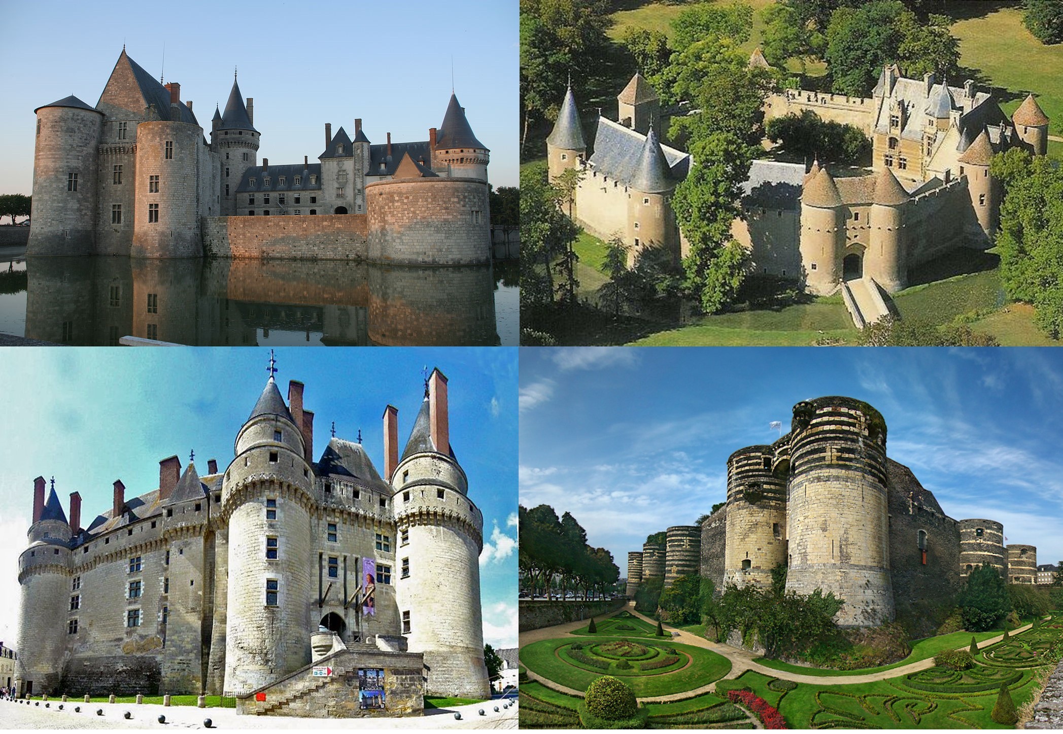 Chociaż niektóre zachowały średniowieczny wygląd (np. Angers, który odwiedzimy, na dole po prawej), to jednak są zbyt duże, stoją w płaskim terenie i nie są otoczone lasem.