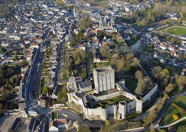 Zgłębiałem dzisiaj opisy naszego potencjalnego "Orlego gniazda", czyli zamku w Loches. Zamek znajduje się w centrum miasteczka, na długim wzgórzu mieszczącym zarówno interesującą nas część jak i resztę średniowiecznego centrum z zamkiem królewskim, ogrodami i kolegiatą. Tu jest zdjęcie wzgórza