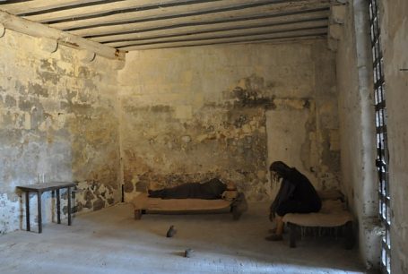 Obydwa prowadzą do podziemi, a podziemia są bardzo ciekawe, bo zamek przez kilkaset lat służył jako więzienie stanu, czyli miejsce przetrzymywania ważnych osobistości .Tu odtworzona cela z tamtych czasów