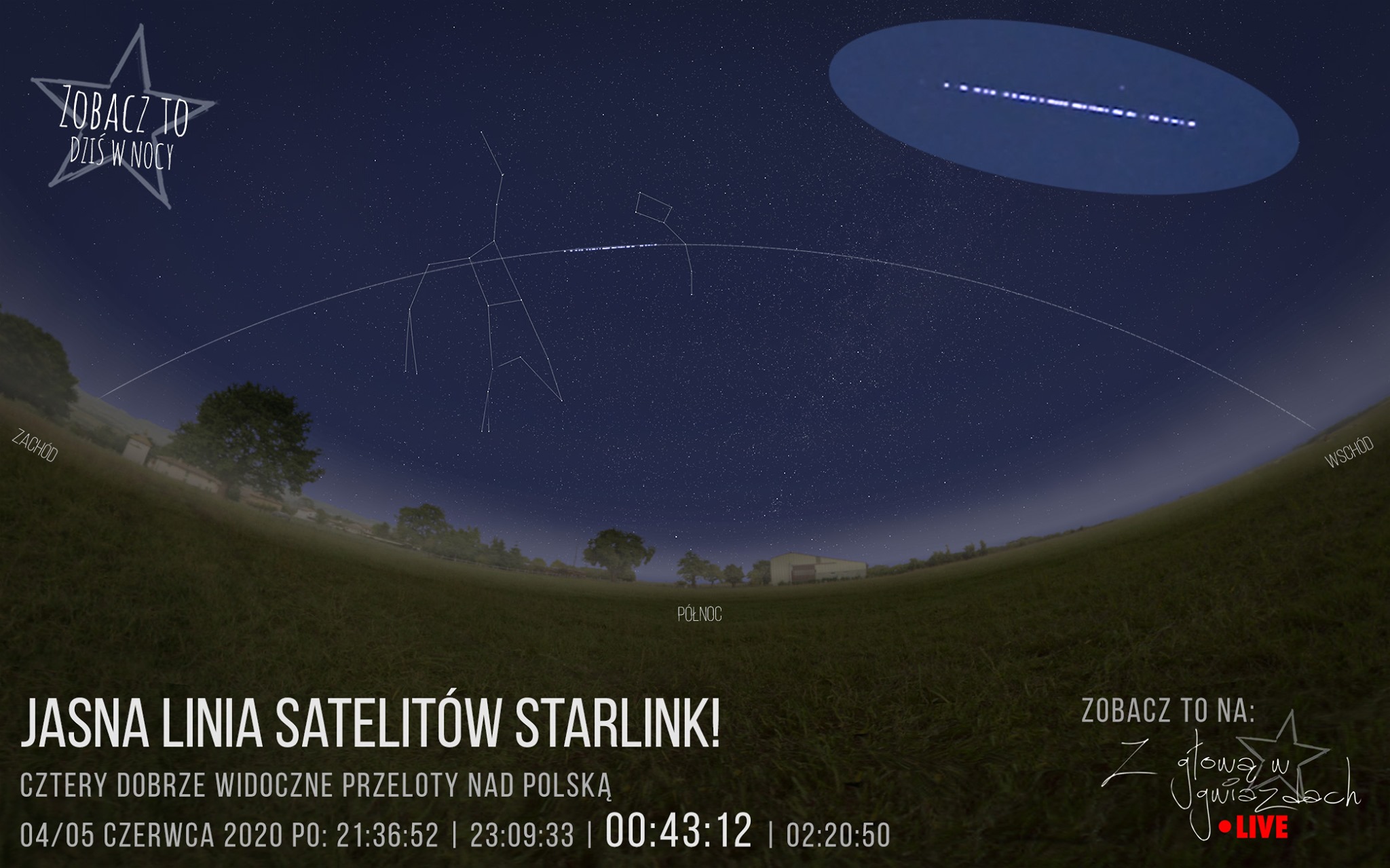 Dzisiaj kolejna szansa zobaczenie sznurka satelitów Starlink na Polską. Dodatkowo będzie można je zobaczyć kilkukrotnie w ciągu nocy. Oczywiście o ile będzie bezchmurnie.