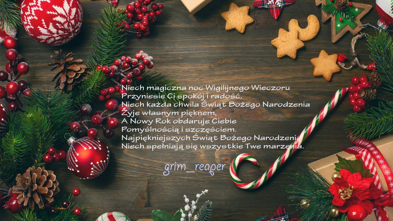 Wszystkim Forowiczom życzę spokojnych i radosnych świąt Bożego Narodzenia. świąt pachnących choinką, spędzonych z najbliższymi i przyjaciółmi. Każdemu z Was życzę spełnienia nawet tych najskrytszych marzeń. Wesołych świąt.
