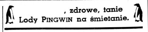 Higieniczne, zdrowe, tanie. Lody PINGWIN na śmietanie. Pamiętam je z PRL. To waniliowe lody na patyku. Higieniczne bo w papierku :-)