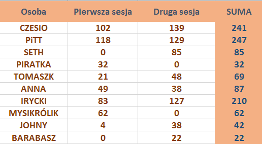 Podaję wyniki drugiej sesji konkursowej: