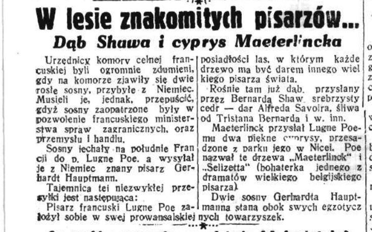 Udało mi się znaleźć potwierdzenie miejscowości, w której Lugne Poe miał "wiejski dom", zmarł tam w 1940 roku, więc zakładam, że to to samo miejsce ale słowa nie znalazłem ani o tym, że tam mieszkał ani tym bardziej o tak nadzwyczajnym lesie, który sobie "zbudował".