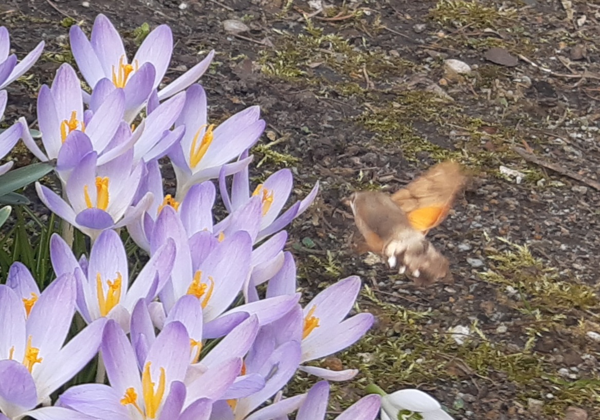 Tej wiosny pierwszy raz zobaczyłem w akcji polskiego "Kolibra" czyli Fruczaka Gołąbka obsługującego wiosenne kwiaty.