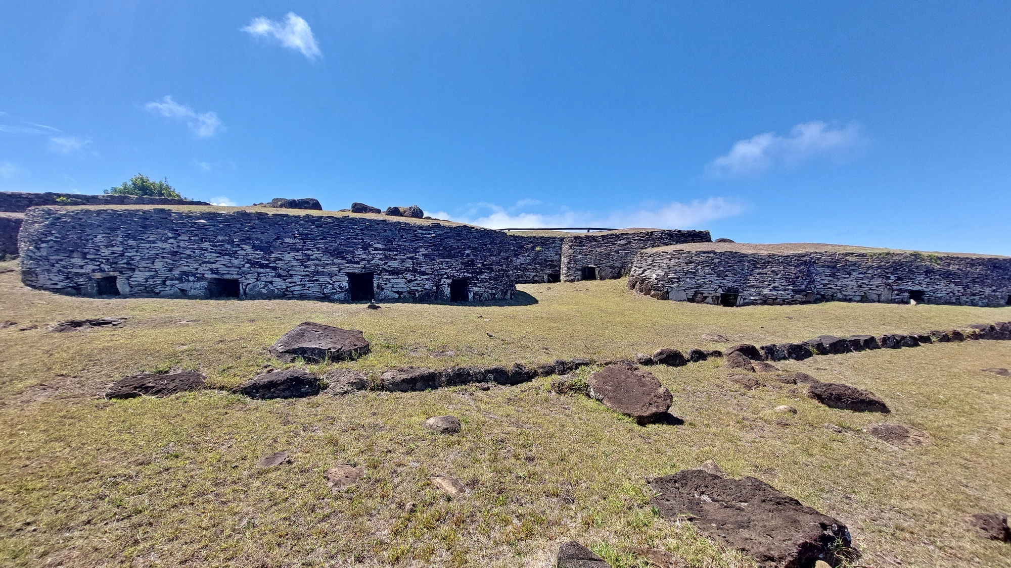 domy kapłanów w centrum obrzędowym Orongo