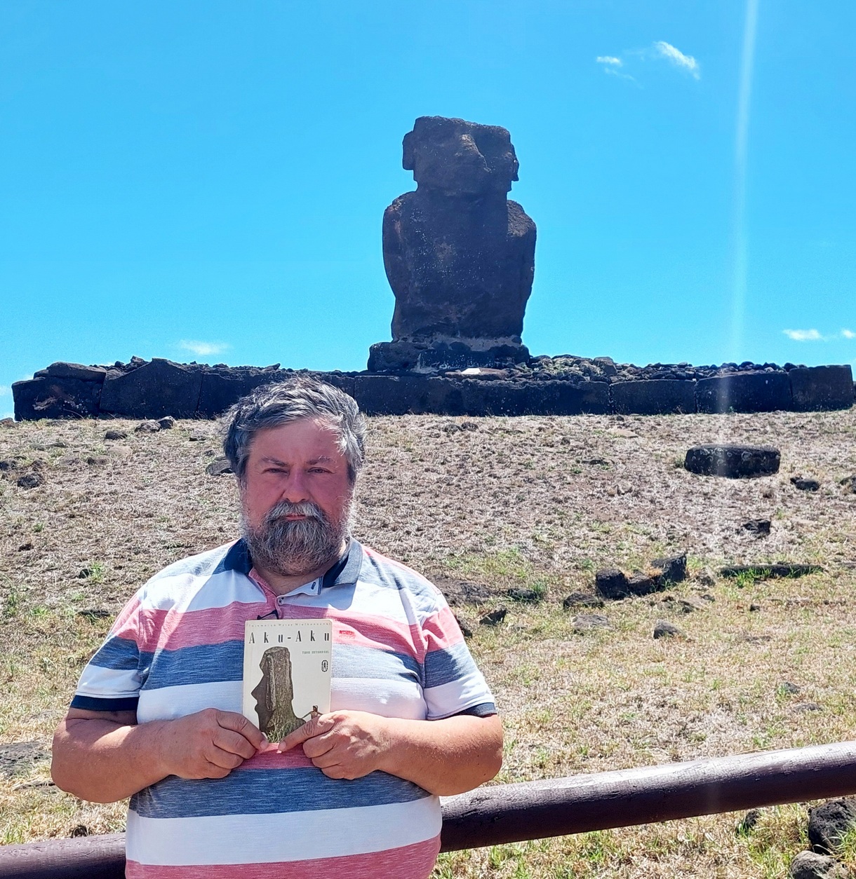 Zaczęło się od tej książki "Aku-Aku" Thora Heyerdahla, o jego badaniach Wyspy Wielkanocnej, przeczytałem w połowie lat 70-tych. Wywarła na mnie niesamowite wrażenie. Może nie tyle sama książka, co opisana w niej kultura, zagubiona gdzieś na końcu świata, mieszkająca w słomianych szałasach ale budująca ogromne kamienne figury, jakich nie powstydziliby się starożytni Egipcjanie ani Inkowie. Moim marzeniem było wtedy, żeby tam kiedyś popłynąć i dotknąć posągu na Wyspie Wielkanocnej.