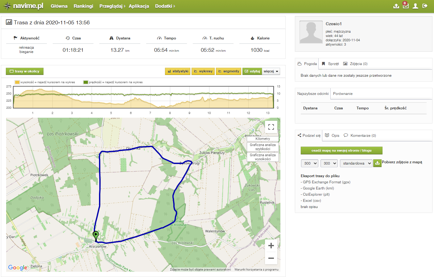 W załączniku kilka zrzutów ekranu z navime.pl gdzie można zobaczyć jakie ciekawostki można wyciągnąć z biegu.